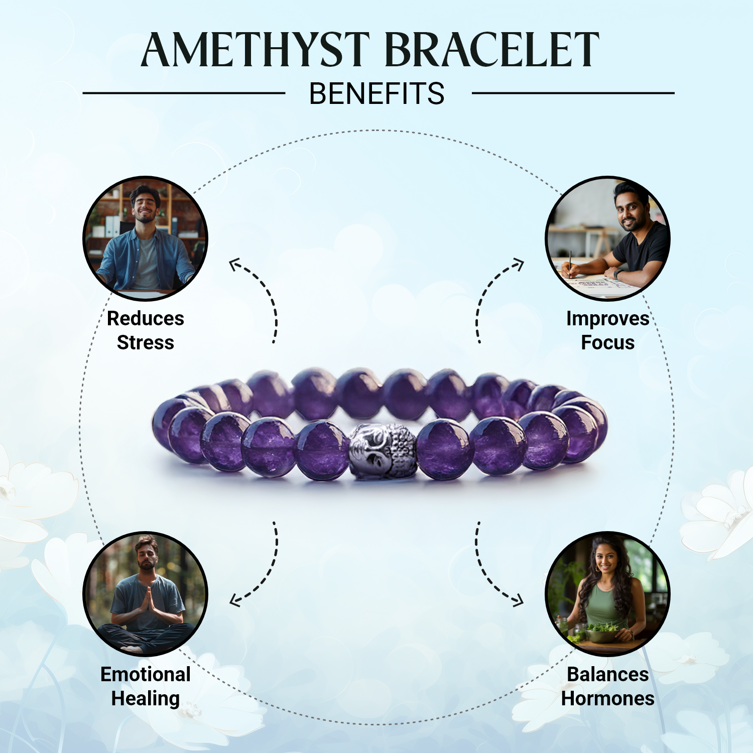 This beautiful Amethyst bracelet comes with amethyst beads known for their calming and healing properties. Perfect for adding a touch of sophistication to any outfit. Designed to offer both beauty and benefits.