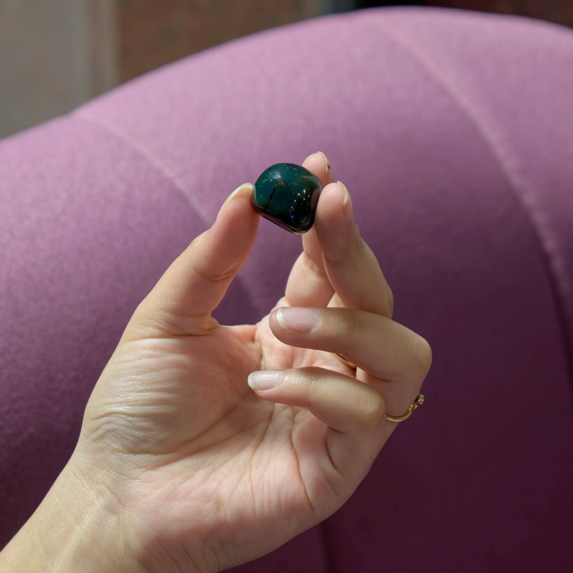 Bloodstone Tumble is a smooth, polished stone known for its deep green color with red flecks. It is believed to boost energy, enhance courage, and promote healing. This tumbled stone is perfect for carrying with you or using in meditation to support vitality and resilience.