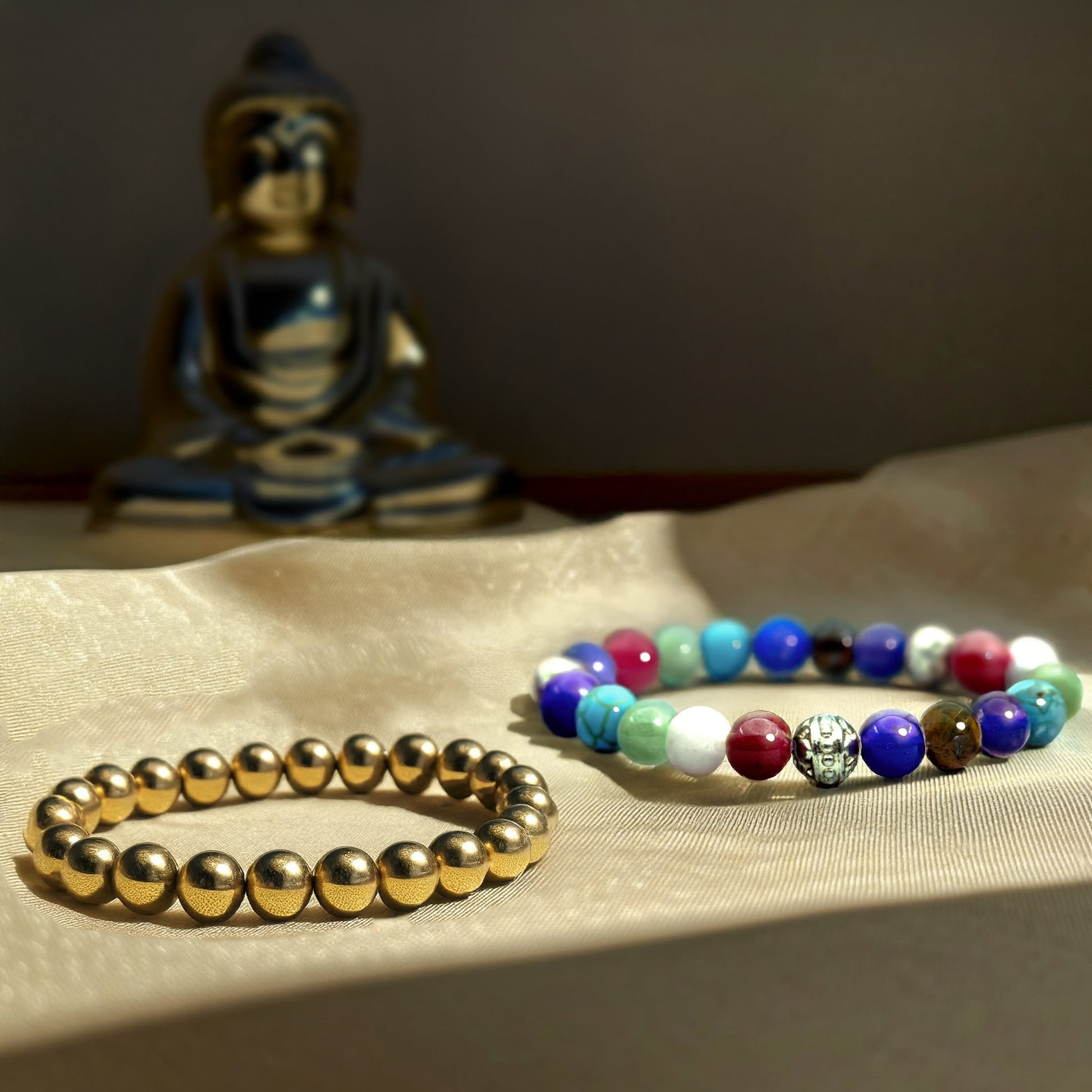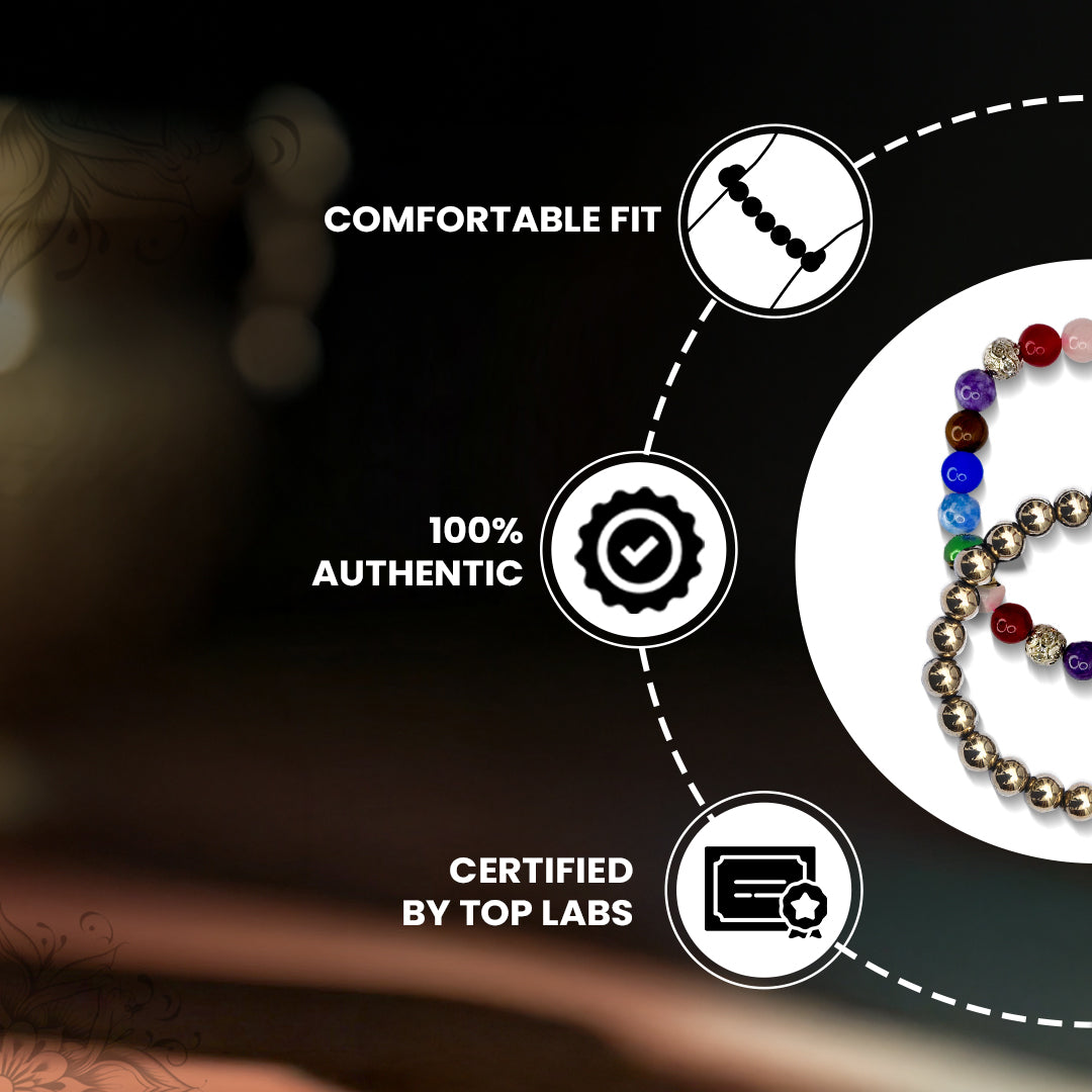 The Money & Health Combo includes the Seven Chakra Bracelet for healing and balance, and Golden Pyrite for attracting money and success. Wear them to balance your energy and finances, bringing both health and prosperity into your life.