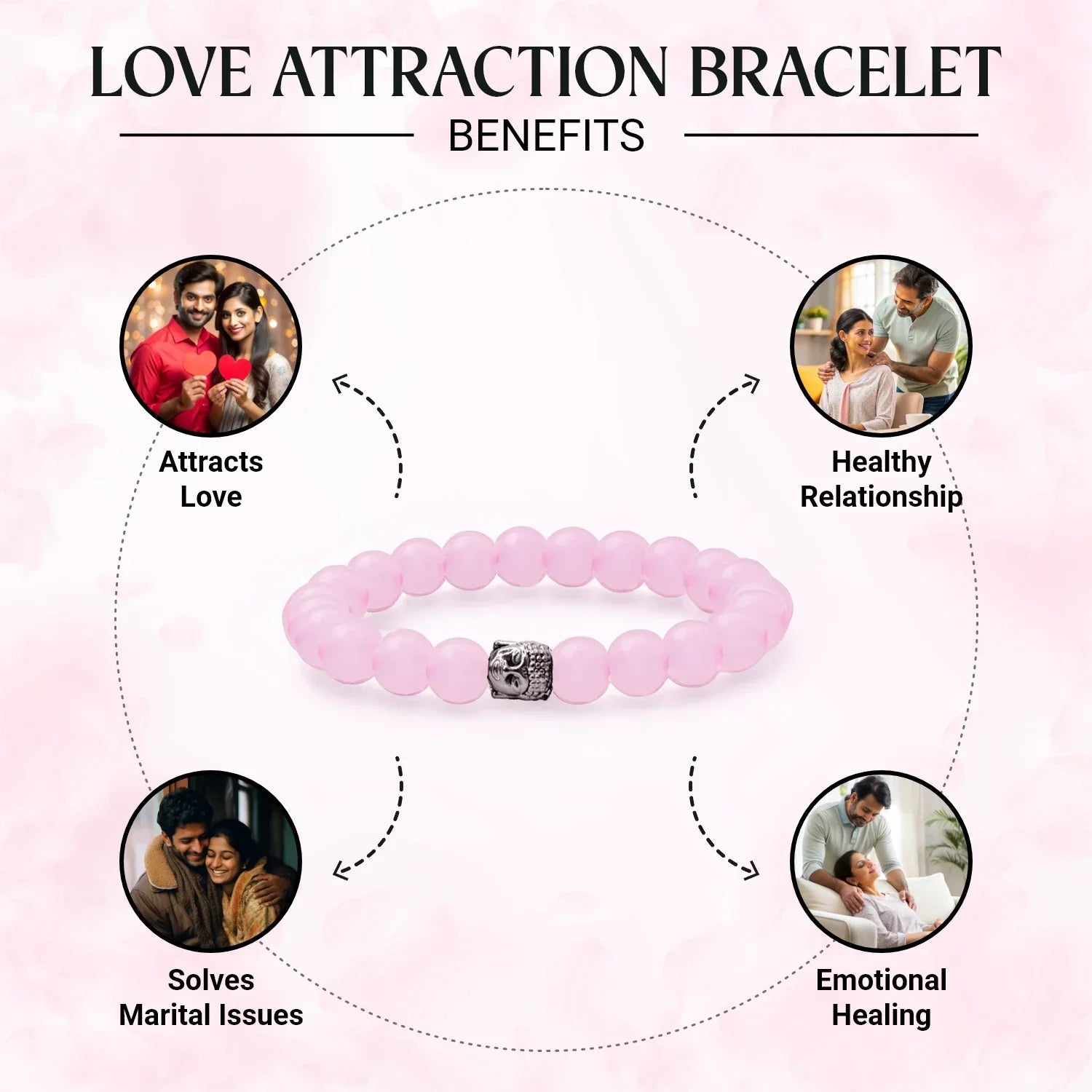 - Rose Quartz Bracelet: Known as the stone of love, this bracelet helps you attract and nurture meaningful relationships, foster self-love, and bring harmony to your personal life.